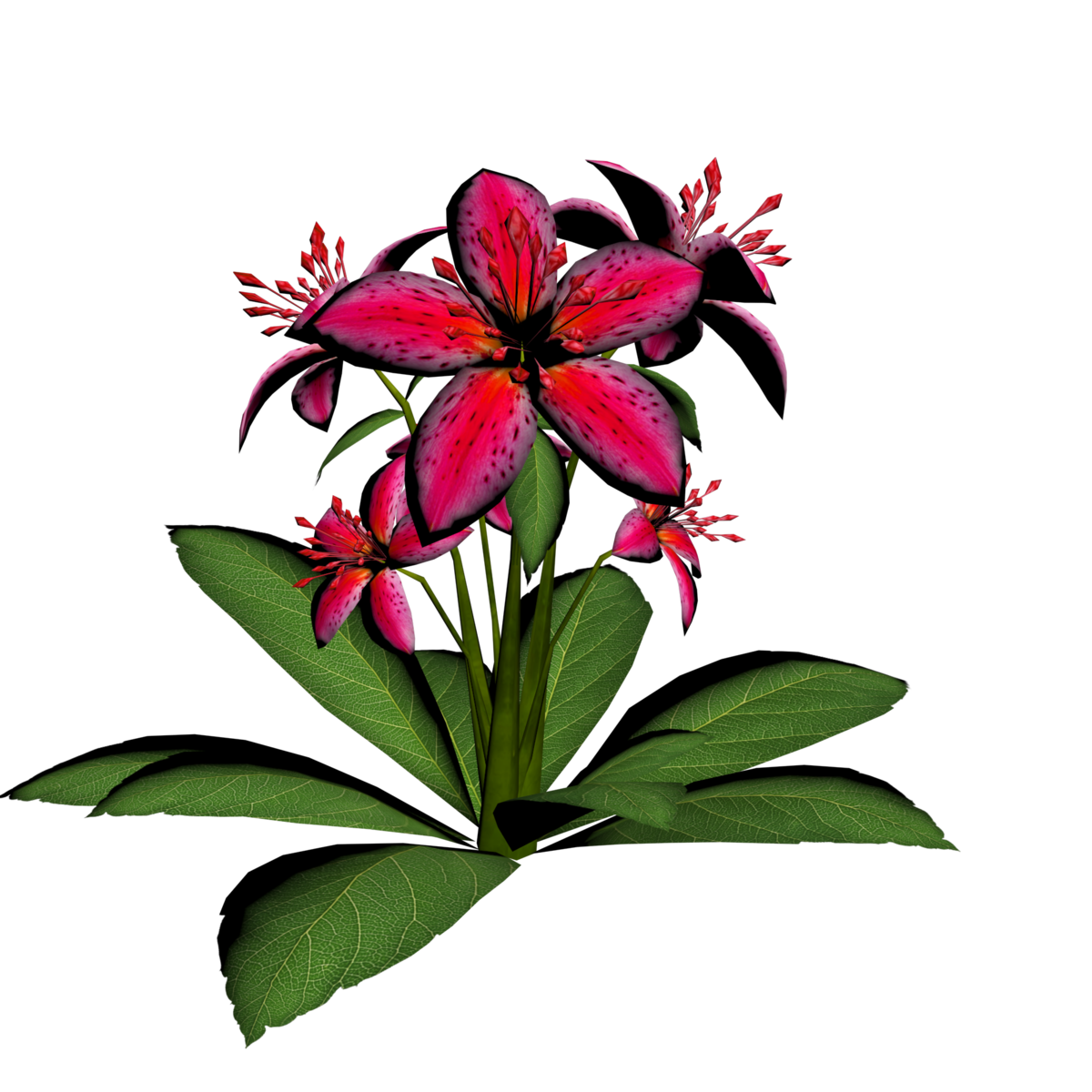 1 Lily Plant with 6 lily flowers and several leaves for your lovely gardens. Polygon count: 6440. There is no collision on this so you can walk through it. I have many colors. To see this flower in Atlas, please visit "LovedWarrior's Ground Plants: https://atlas.sansar.com/experiences/lovedwarrior/lovedwarrior-s-ground-plants" Please note that all my flowers are 100% detailed mesh meaning no flat planes with flower pictures pasted on them. Each petal, pollen, stalk and leaf is made by hand and placed by hand. I only make grass from planes with grass pics pasted on them. All the textures are also made by me. If you have any flower or plant requests, show me a picture of a flower and I will let you know if I can make it for you. Enjoy!