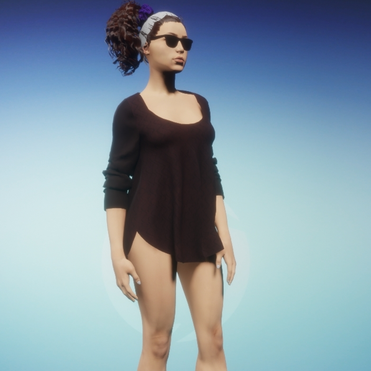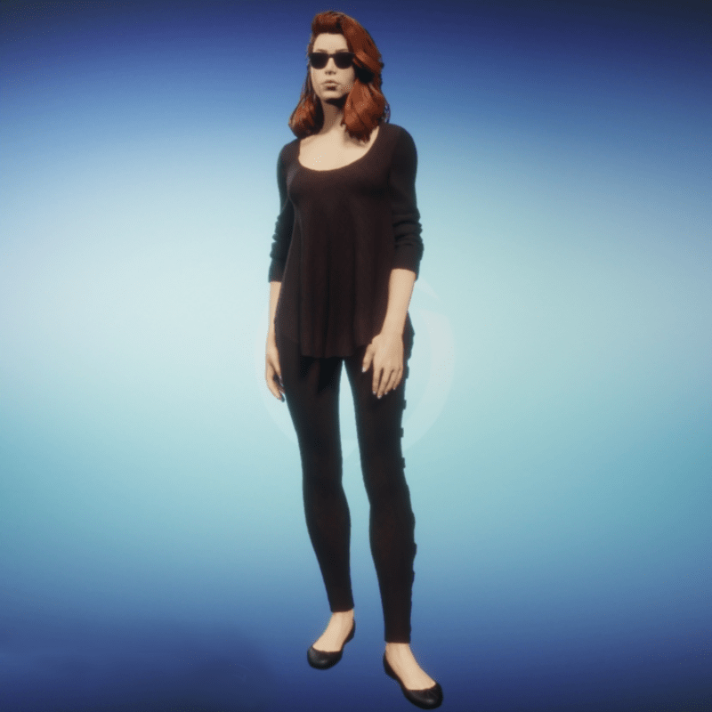 This loose fitting top has a scoop neck, pushed up sleeves, and a long gently gathered bodice. The sleeves and cuffs are of loose fitting spandex with the bodice made of a sculpted knit fabric. This top matches the JRNY - Strapped Leggings. Remember to use animate cloth to make the garment fill in. You may also tug and pull at the garment while in animate cloth mode to achieve your own unique style.