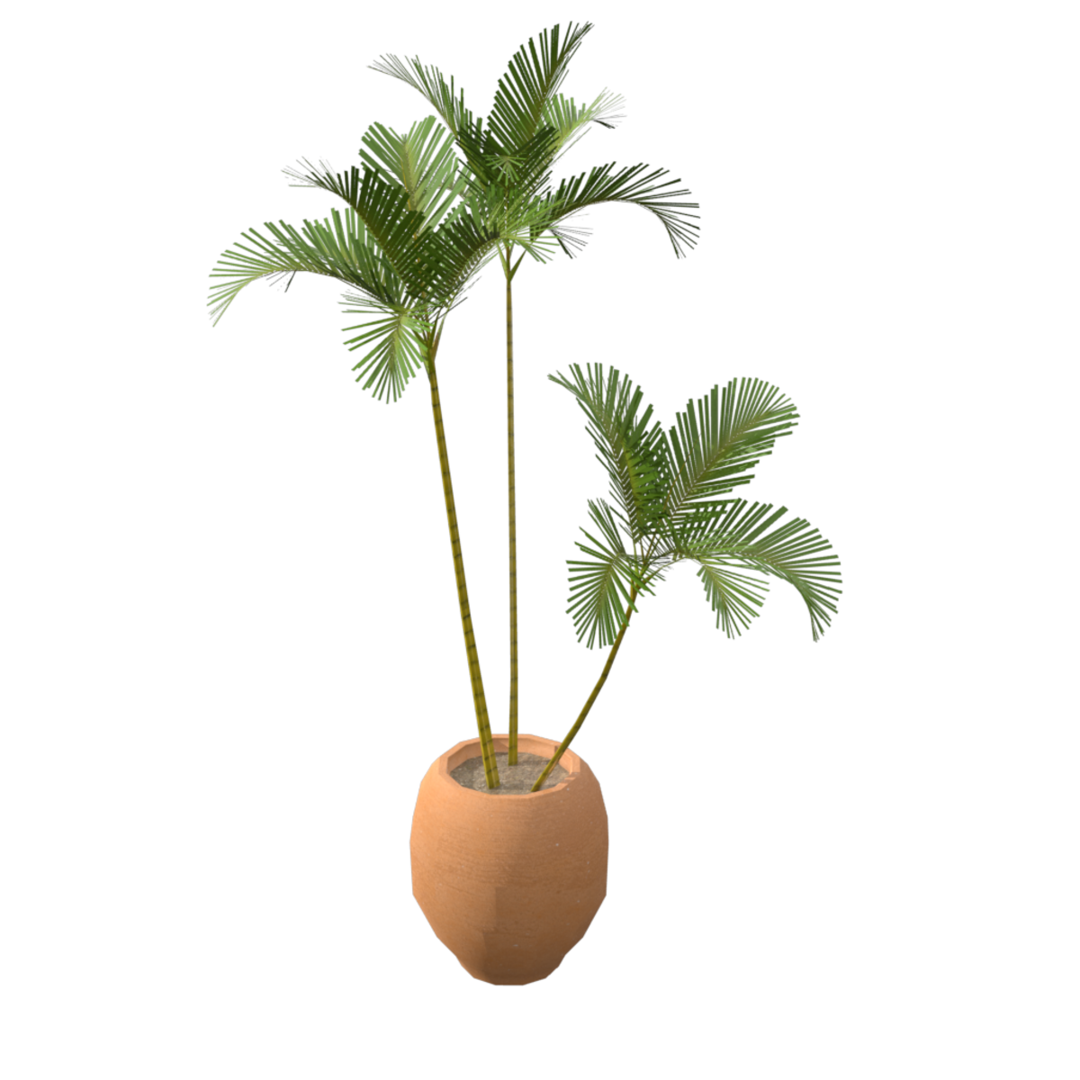 Areca plant in a terracotta pot.