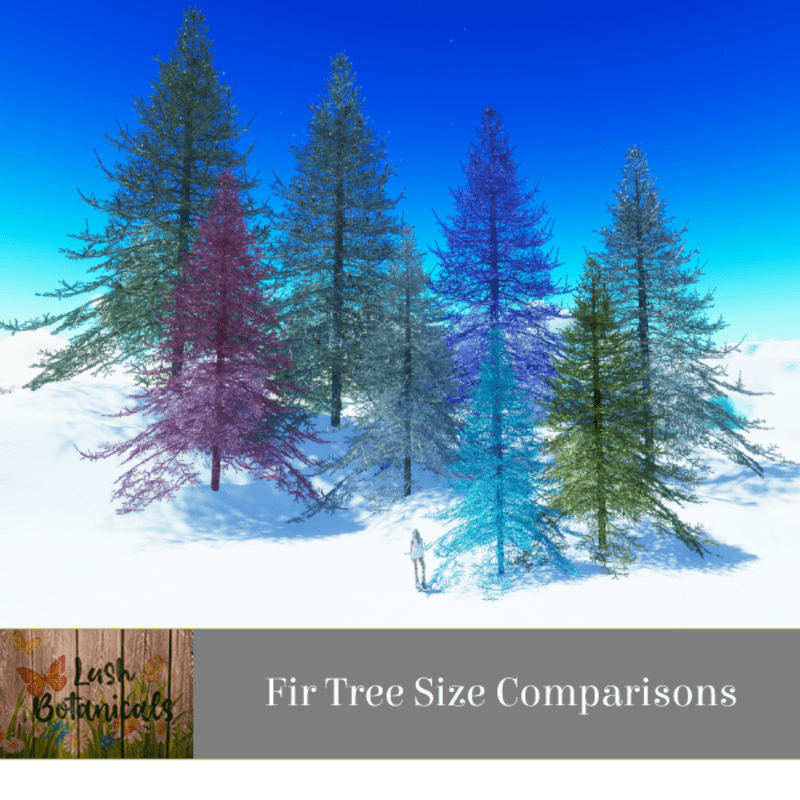 Fir Tree in Natural Colors. See images. Last image is sizing reference (avatar is .85 in height). Fir Tree size at largest is 1 down to smallest at .4 Visit Lush Botanicals in Sansar https://atlas.sansar.com/experiences/nicci-2791/lush