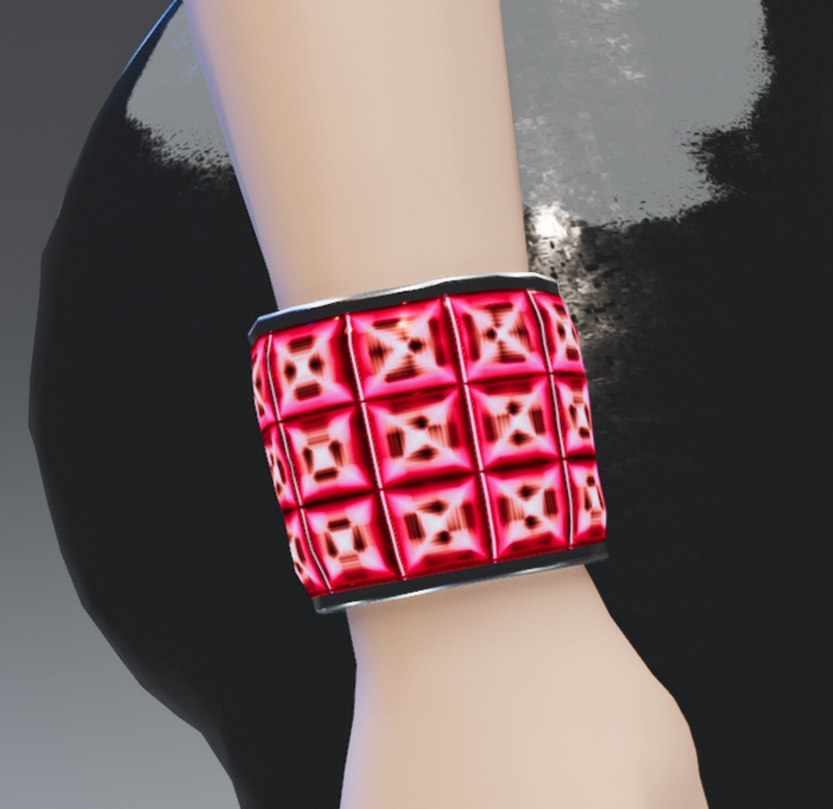This cool Quantum-Red GLOW Bracelet has silver trims and glows in the dark. Enjoy and go-GLOW! :)