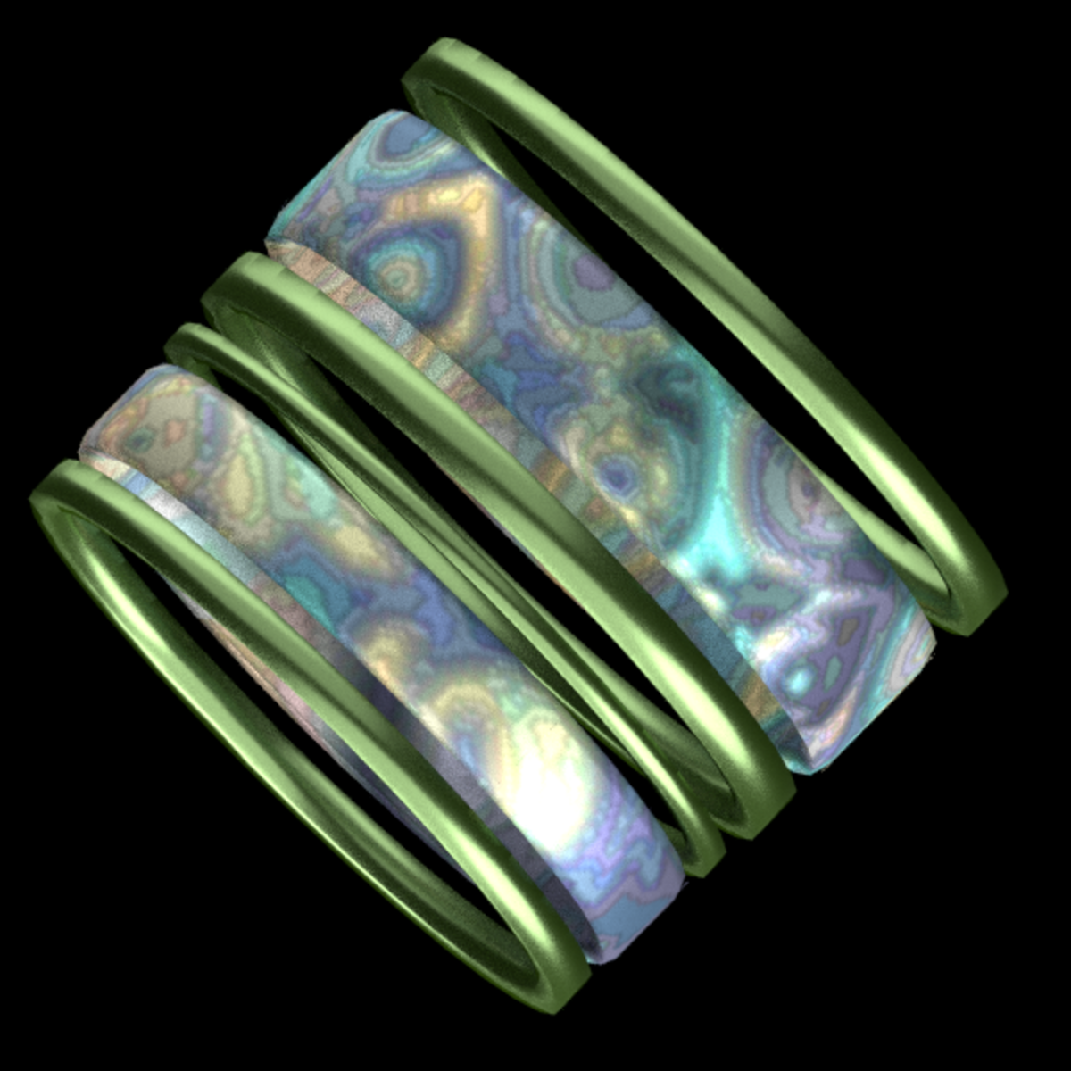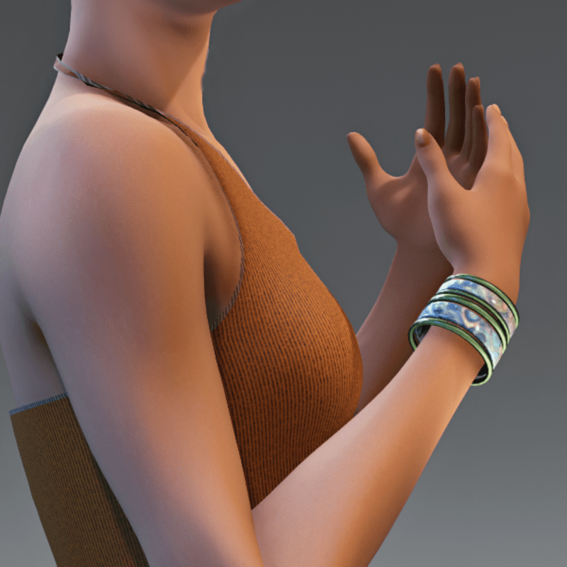 Stacked cylinder shaped bangles attach to lower right arm and show up in the WATCH slot of the accessories folder. These can be resized and adjusted a bit as needed for various avatars. 1792 tris