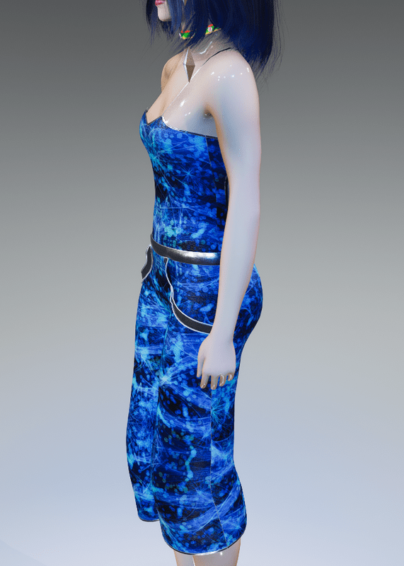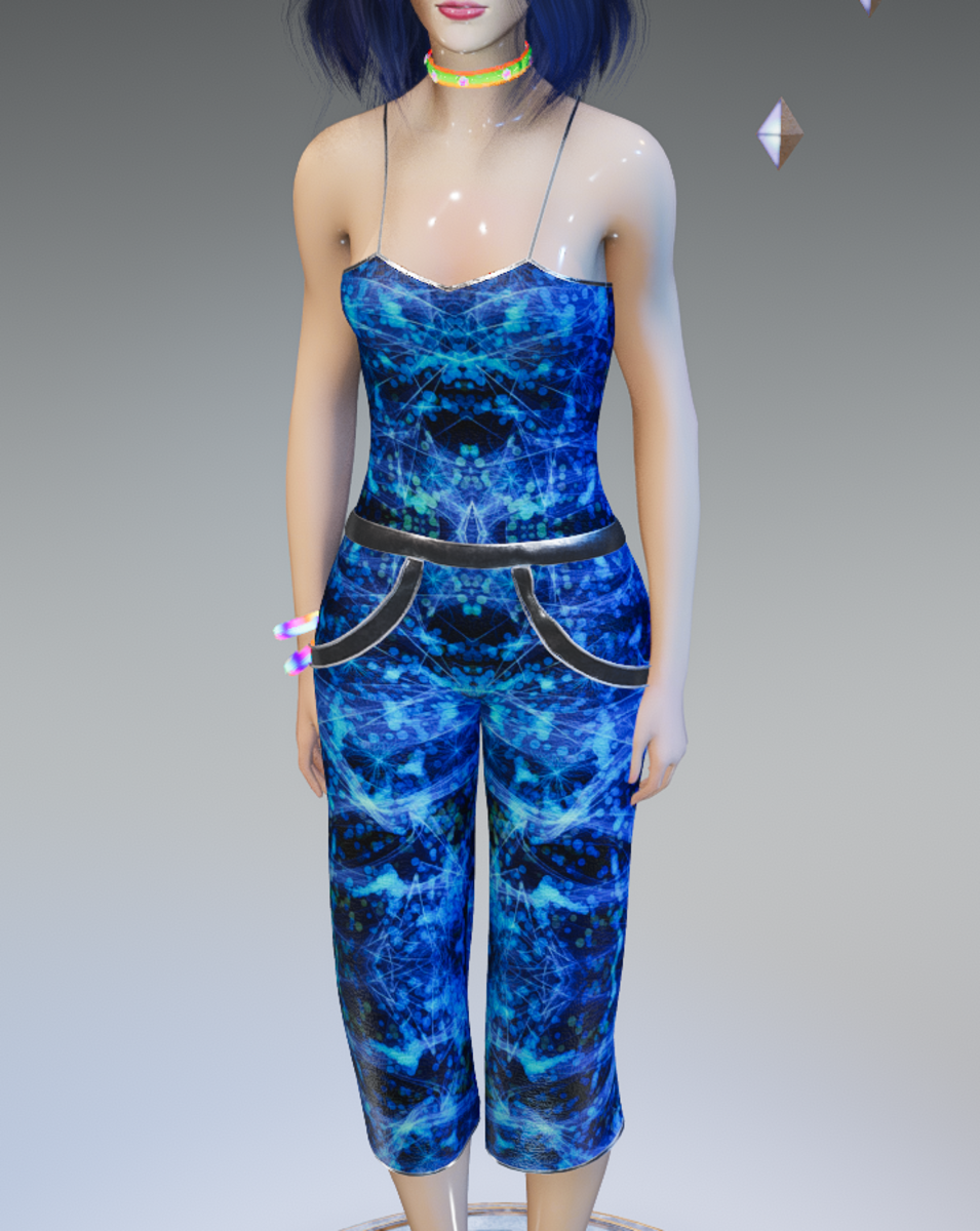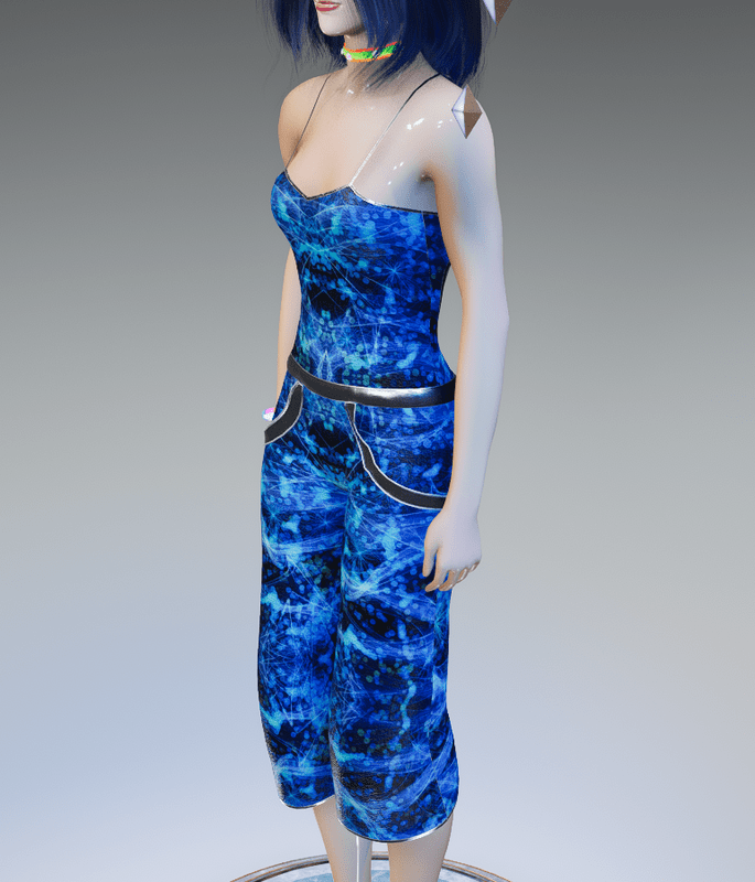 This Hip summerish Panamerica Convertible(Open Back) Blue Quantum-Web Pants-Top with Silver Trims is all one piece(top & bottom) is cool-classy! Enjoy & have fun! • Will fit all other avatars