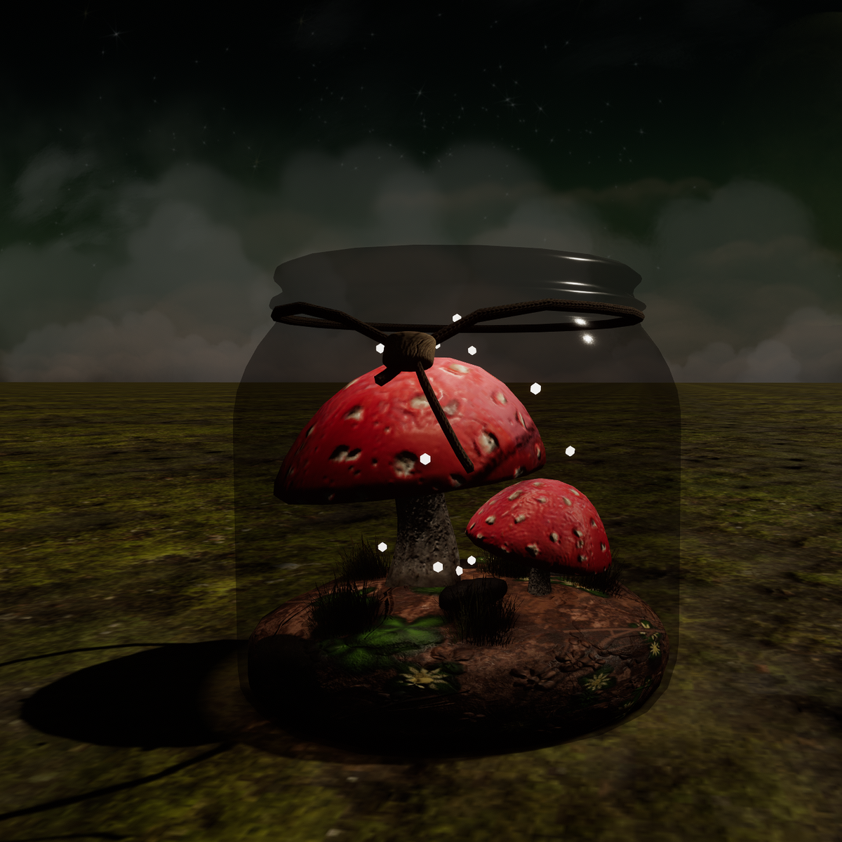 Glass jar, containing 2 mushrooms Animated sparkles Collision: Yes Light: Yes