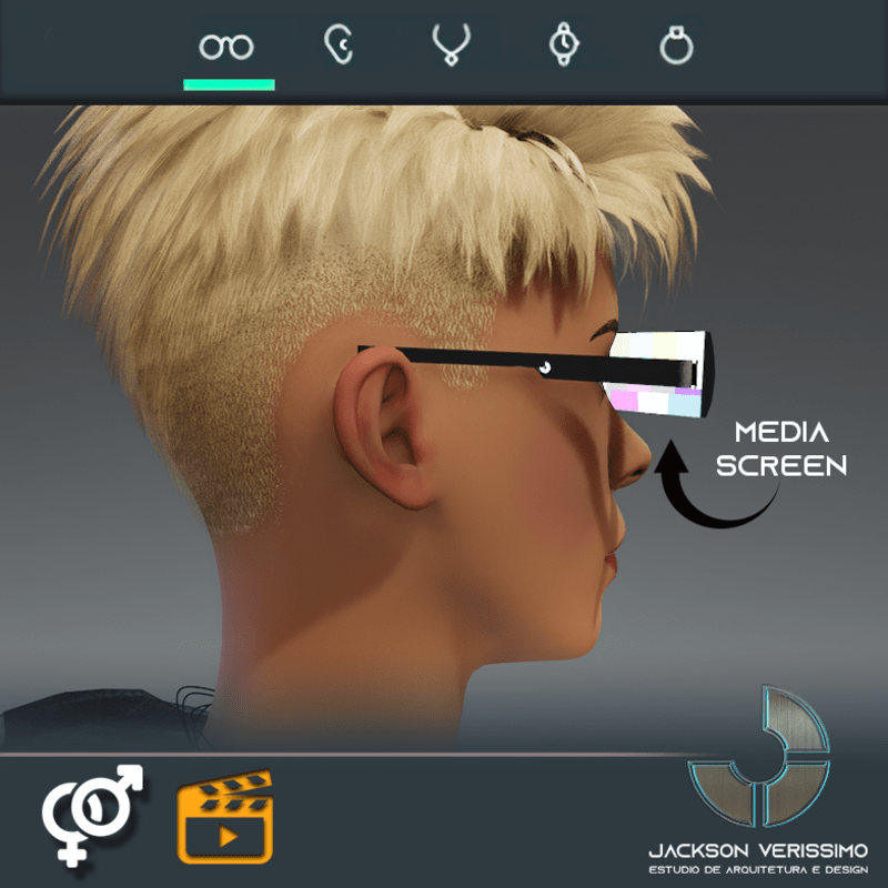 Minimal and contemporary Design. Metallic Texture for a nice reflect of the lights. With Emissive Media Screen . Unisex. Match perfectly with all female 2.0 avatars. Men Avatars and other type of humanoid avatars will need a little adjustment.