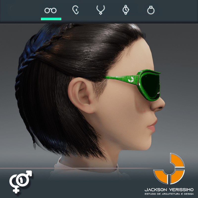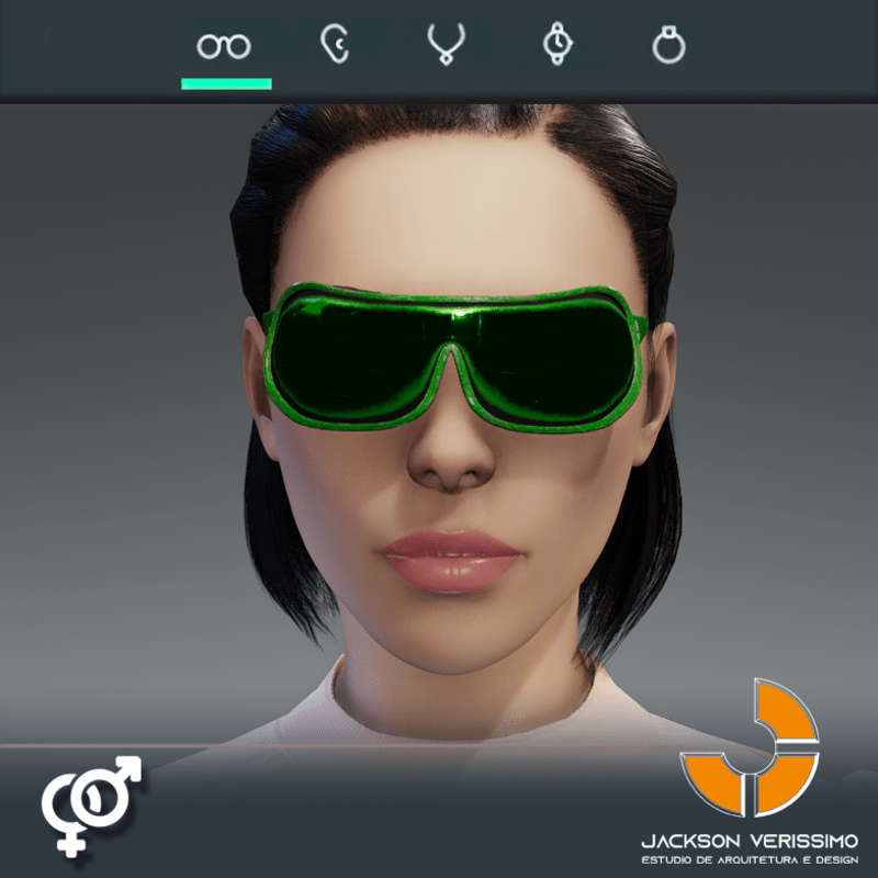 Ai Glasses 1- Green is a model of glasses designed with Ai. PBR Textures 2 k Match with all avatars in Sansar. Maybe a adjustment for models diferent of Male Default 2.0 avatar of Sansar.