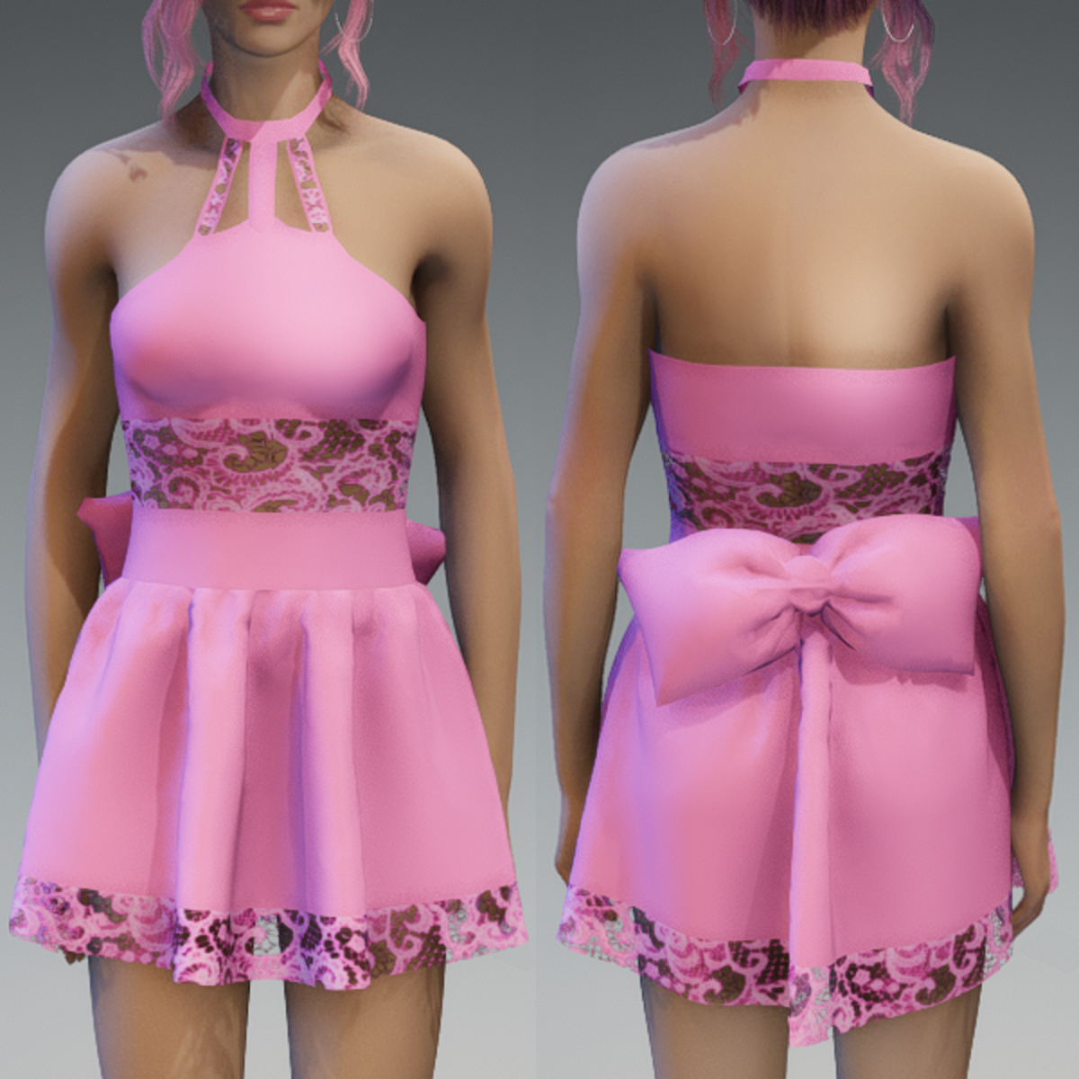 My partydress in a cuter version with a cute bow on the back and some lace applications. Note before buying: If you're not sure about it and you want to know how this dress would look like on your avatar - please try my free "siggys store" version of this dress first! Enjoy!