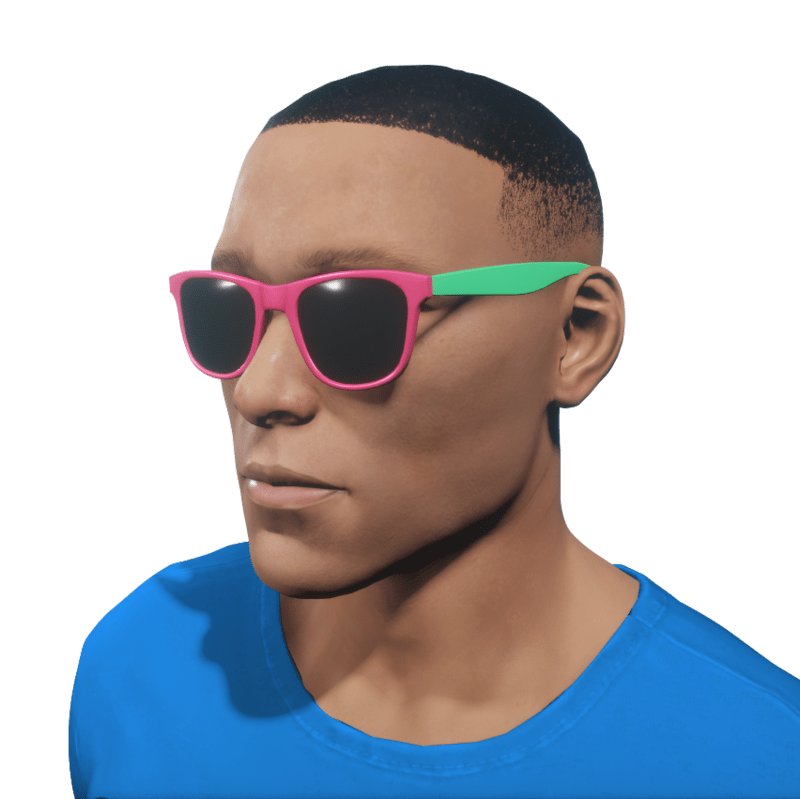 Pink and green sunglasses in a classic style. Sized for male avatars.