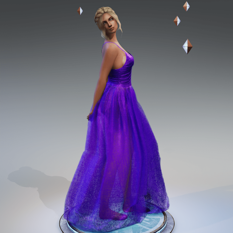 With this silk and tulle dress you will be the belle of the ball! Easy to fit, adjusted to most female human bodies so you will only have to simulate it. But be aware, your simulation takes a while because the design has so much fabric.