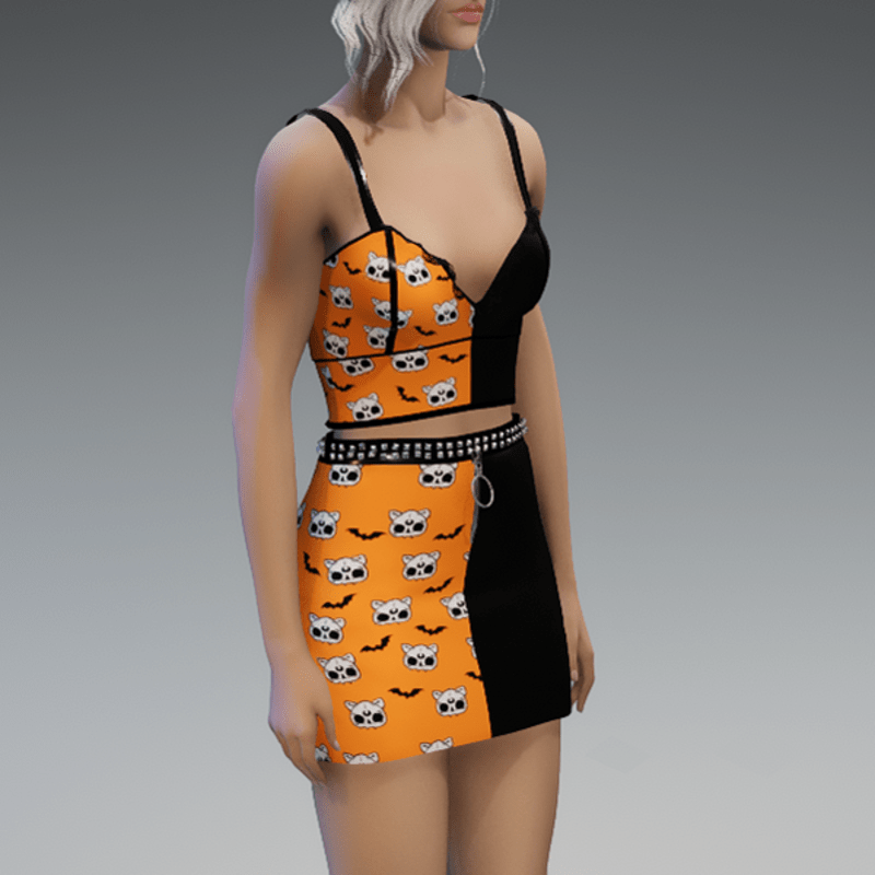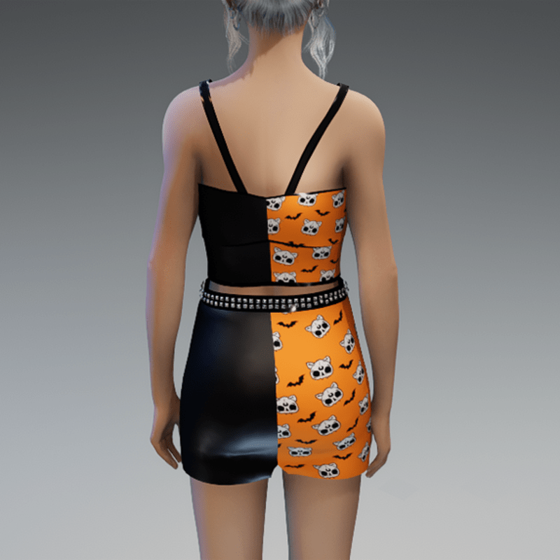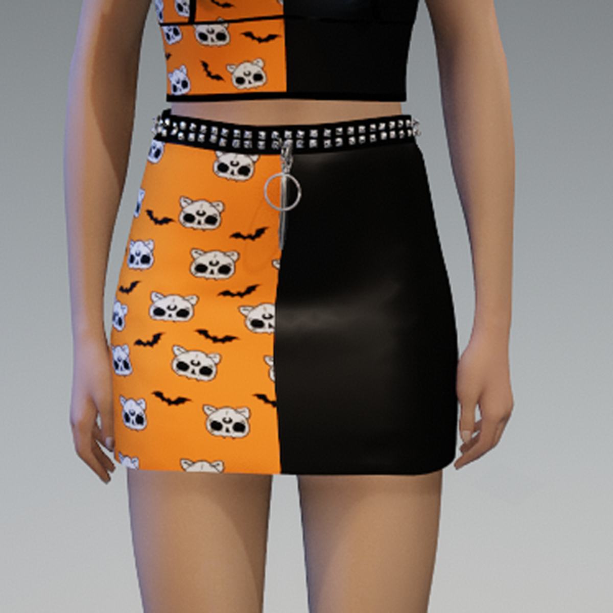 The skirt comes with a rivet belt on the top and a zipper on the front. Enjoy!