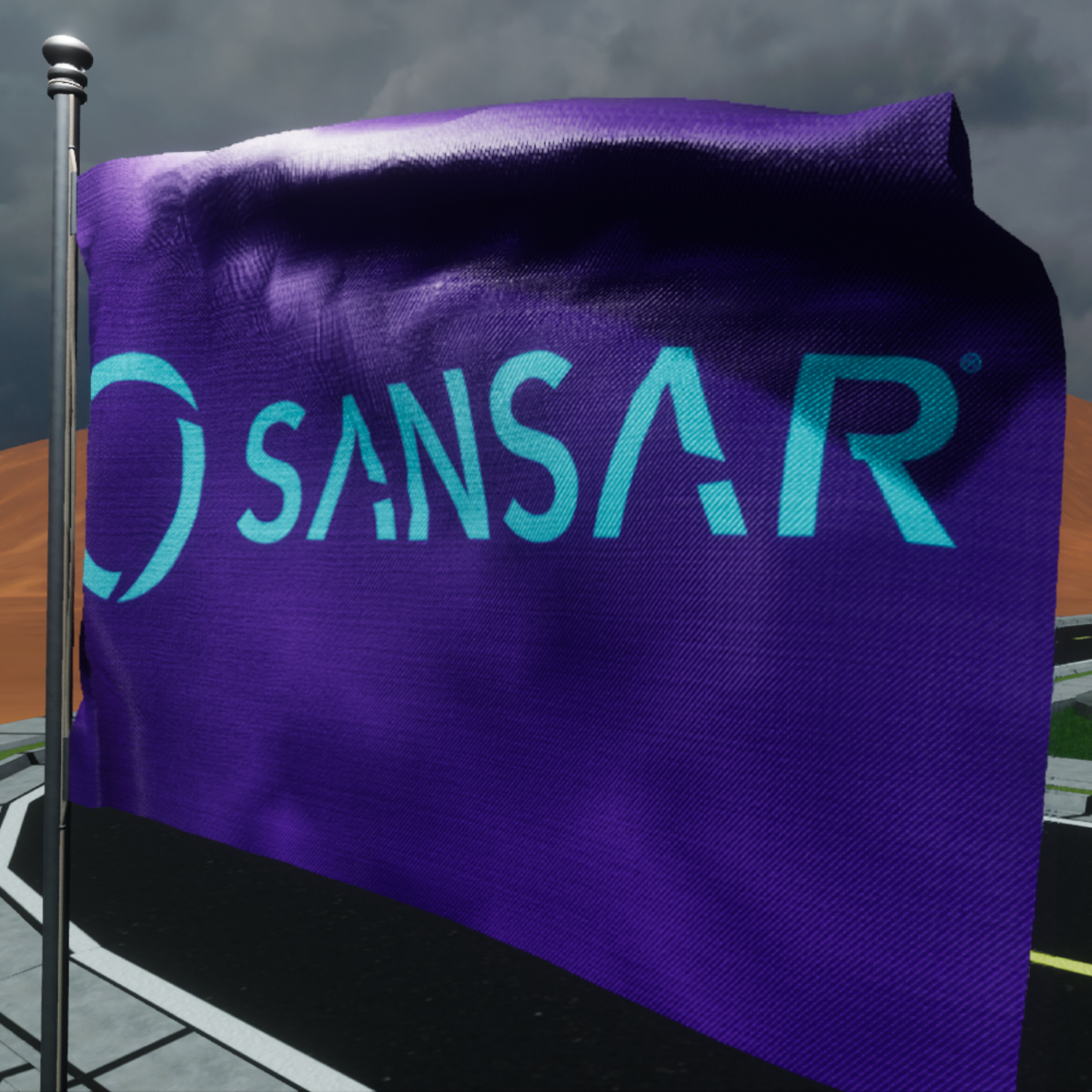Animated SANSAR flag on purple fabric. With animation waving in the wind. It is placed on a 4 meter pole. All permissions enabled except meterial flag. Only available: https://atlas.sansar.com/experiences/fernandop/tka-jumble-sale Don't forget to rate the product.