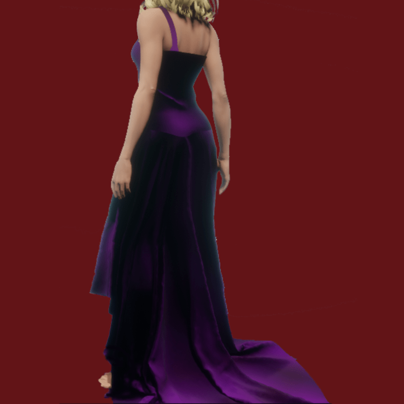 Beth in Deep Purple - A beautiful and special evening gown falling shorter in the front, trailing at the back
