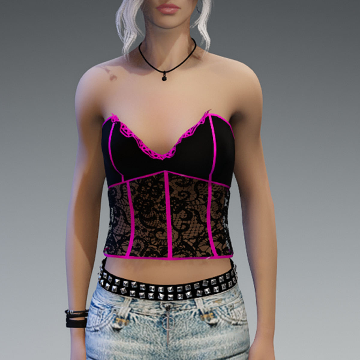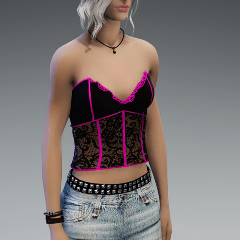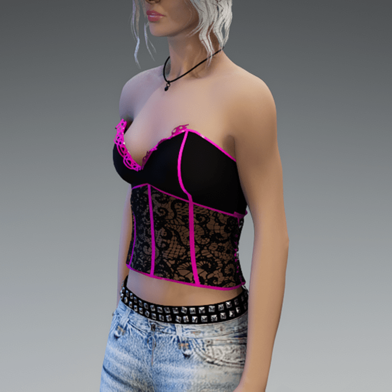 My corset top in black with some pink parts. If you're not sure how this top would look like on your avatar - feel free to try my 'siggys store' version first, before buying this one! Enjoy!