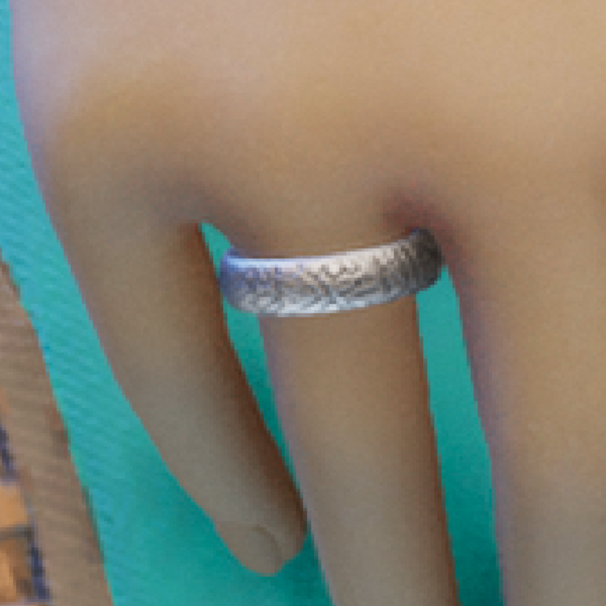 A simple silver ring engraved with the Shahada, for women.