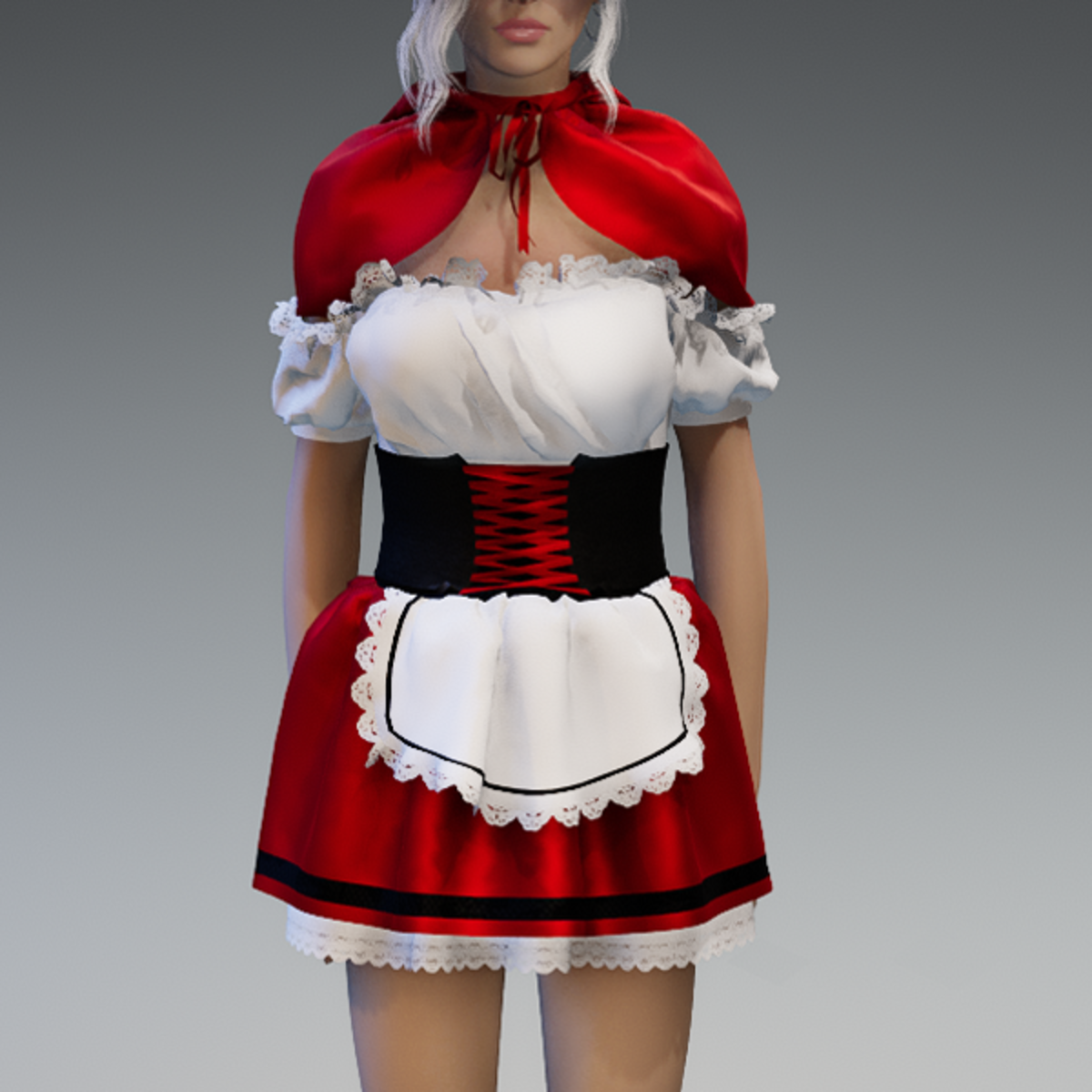 My red riding hood costume comes with a hood-cape. please note, that the hood is just for decoration and may not fit the head of your avatar. PLEASE use this demo to see if the dress and the cape will work with your avatar if you're not using the default one (and please adjust the dress first and then put your hair on) https://store.sansar.com/listings/0861ba66-52df-4671-8d30-8d6d75084f29/red-riding-hood-costume-demo Enjoy! And Happy Halloween!! :)