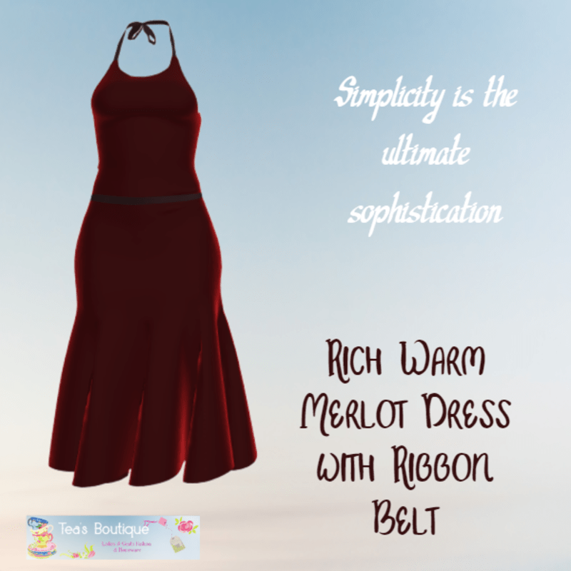 Sleeveless Over the Knee length Dress in a Rich Warm Merlot colour Fabric. Black Ribbon Halter Neck & matching Ribbon Belt. ~ Regular fit - Easy Wear ~ Avatar 2.0-compatible ~ More Dresses available in the Store. Feedback is Always Welcome, If you like to see this outfit in another colour Please get in touch. flickr: https://flic.kr/g/3egczE Tea x