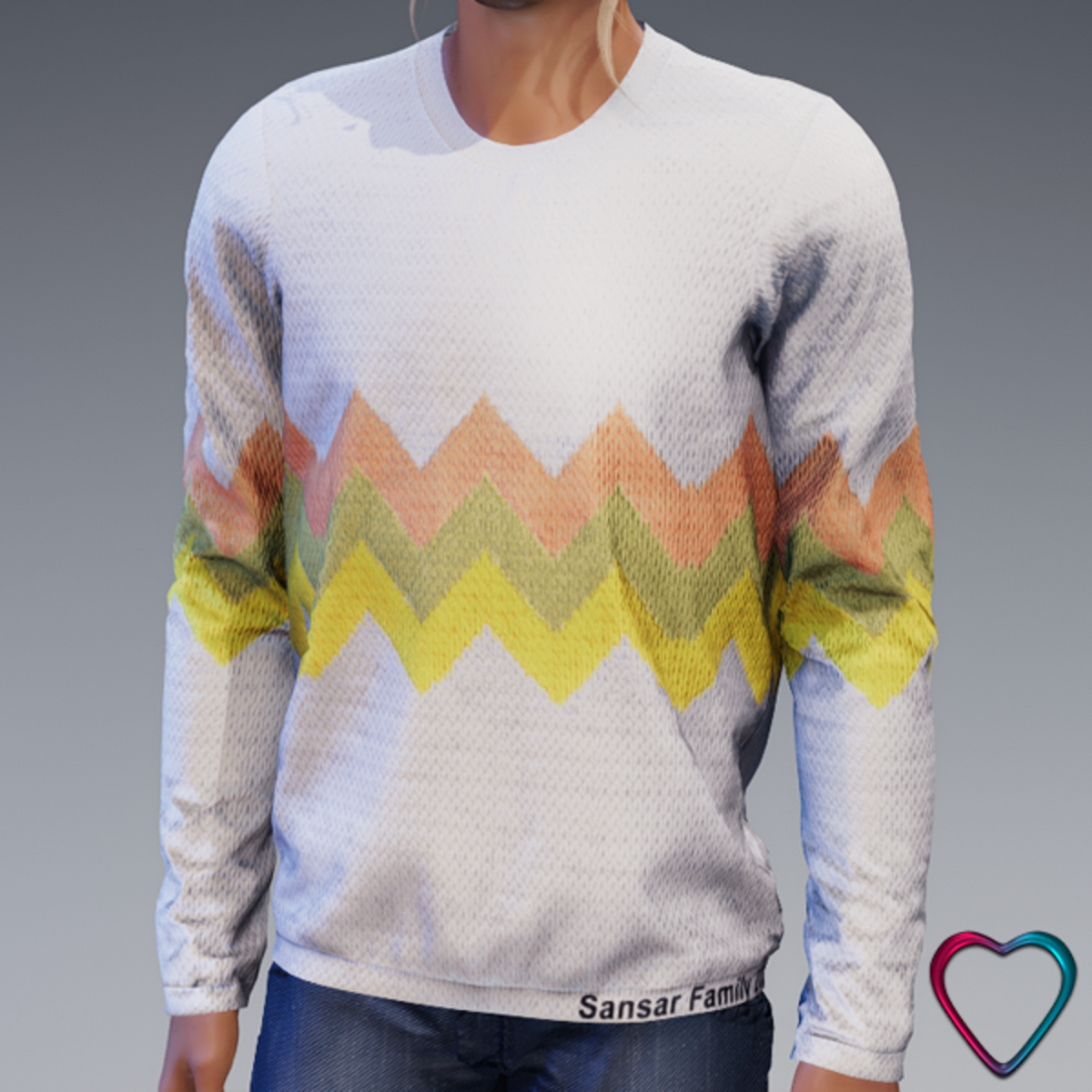 Sansar Family Sweater 2025 is a special creation commissioned by Sansar. As a recognized top creator within the Sansar community, I was invited to design the official Sansar Family – Winter Edition 2025 sweater. This project reflects a unifying and timeless design, created to represent the spirit of the Sansar Family through an elegant, accessible piece suitable for all avatars. A stylish and graphic winter pullover designed to bring a subtle touch of color while keeping a clean, modern aesthetic. This piece stands out with its central zigzag pattern, running across the torso and seamlessly extending onto the sleeves for a continuous and dynamic visual flow. The cool white base color enhances the contrast of the patterns, delivering a soft, balanced, and polished look ideal for winter environments. Perfect for casual, cozy, or urban outfits, this pullover easily blends into a wide range of styles. Two color variations are available: - Warm ZigZag: orange, green, and yellow for a bright, cozy feel - Soft Pastel ZigZag: pink, blue, and purple for a softer, modern vibe Designed for Women and Men, this item is part of the Sansar Family – Winter Edition 2025, with careful attention to textile detail and visual comfort. ------------------------------ Technical Details: - Long-sleeve pullover - Continuous zigzag pattern (torso + sleeves) - Cool white base color - 2 color variations available - Female & Male versions available ------------------------------ Enjoy and Keep Good Vibes. Hugs from Morgane. ------------------------------