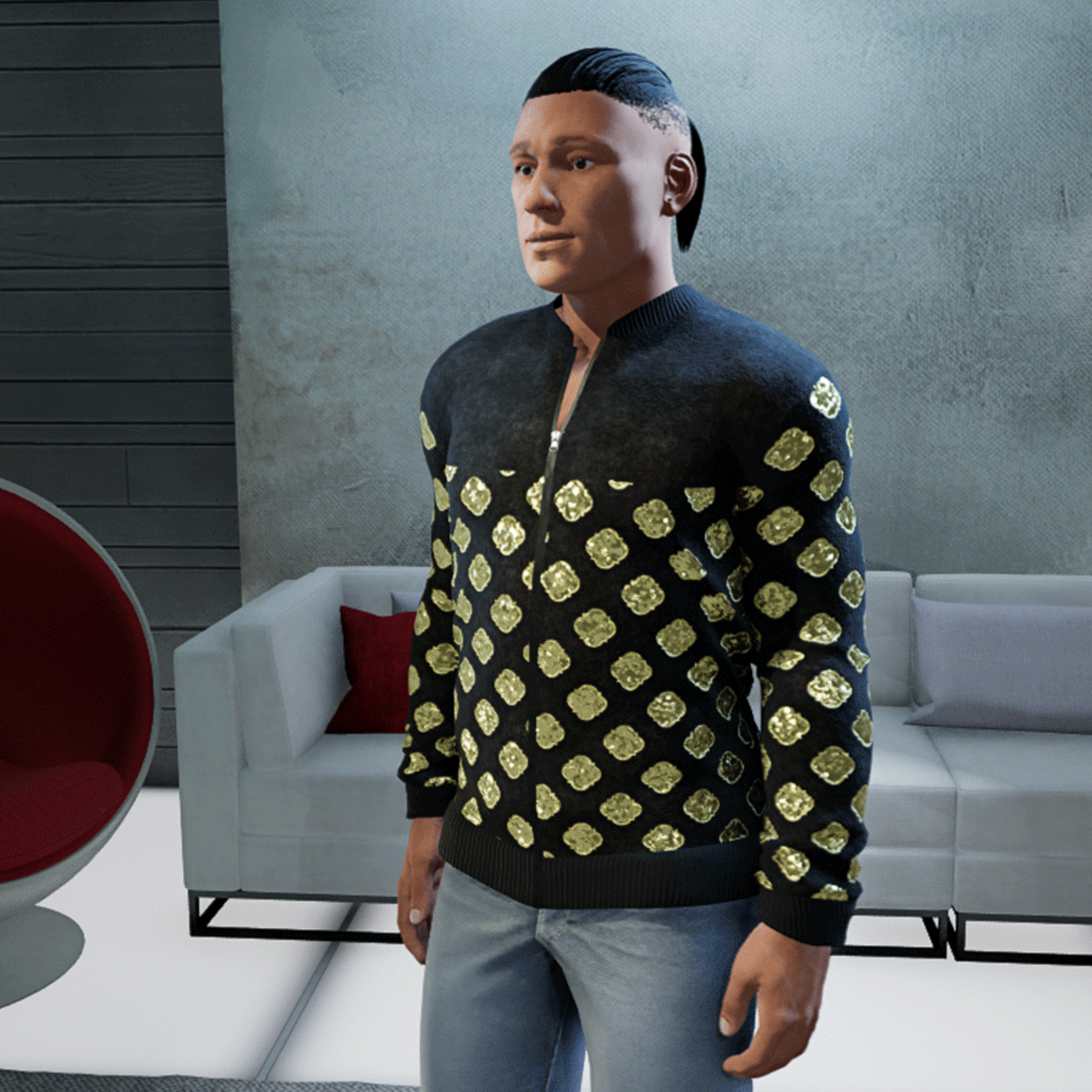 High quality jacket made of suede and with shiny pattern and working zipper, Wear your jacket open or closed. Please don´t forget the ratings ;) Feel free to simulate the clothes before wearing it to adjust it optimally.