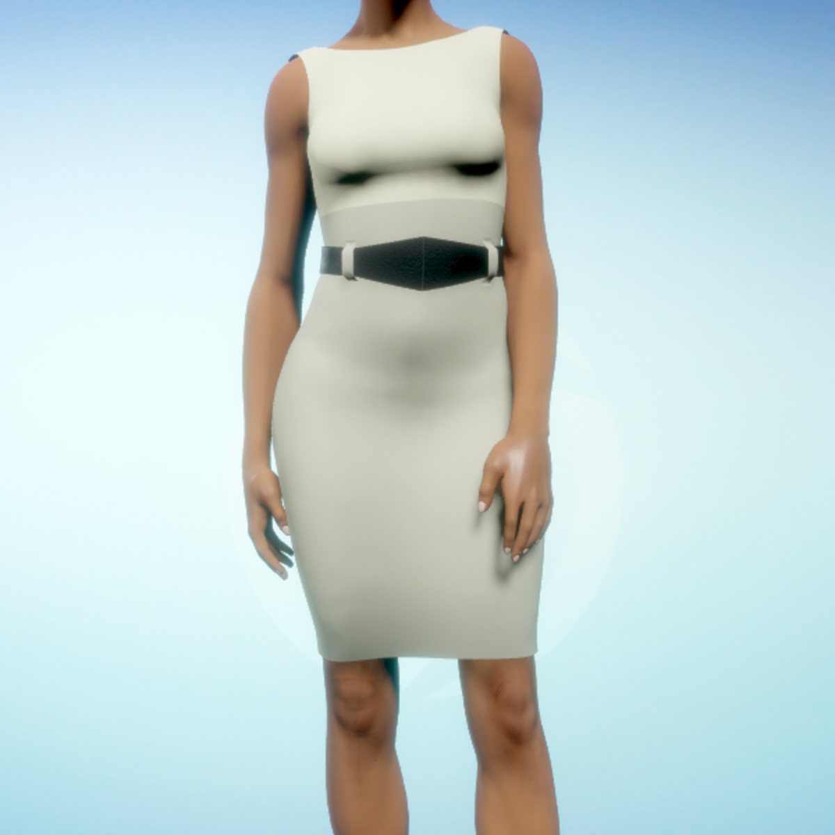 Boatneck executive dress with a black leather belt. By Sweet Distractions Note: You will have to tug the material in some places to get rid of 'poke-through'.
