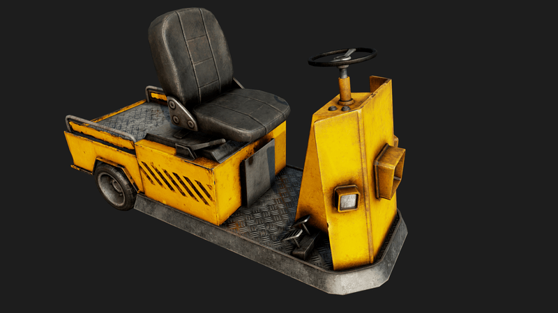 Industrial Vehicle C PBR Very Detailed Low Poly Luggage Vehicle / Industrial Transportation Vehicle, with High-Quality PBR Texturing Fits perfect as Environment Decoration, or if you could make it drive by scripts. The Wheels and Steering Wheel are seperated to be animated. Mainly used in Airports for Luggage Transportation, but fits perfect in other Industrial Environments. Created using 3DSMAX, Zbrush, Topogun, and Substance Painter. Collision Shape : 291 Tris Sit Point Added