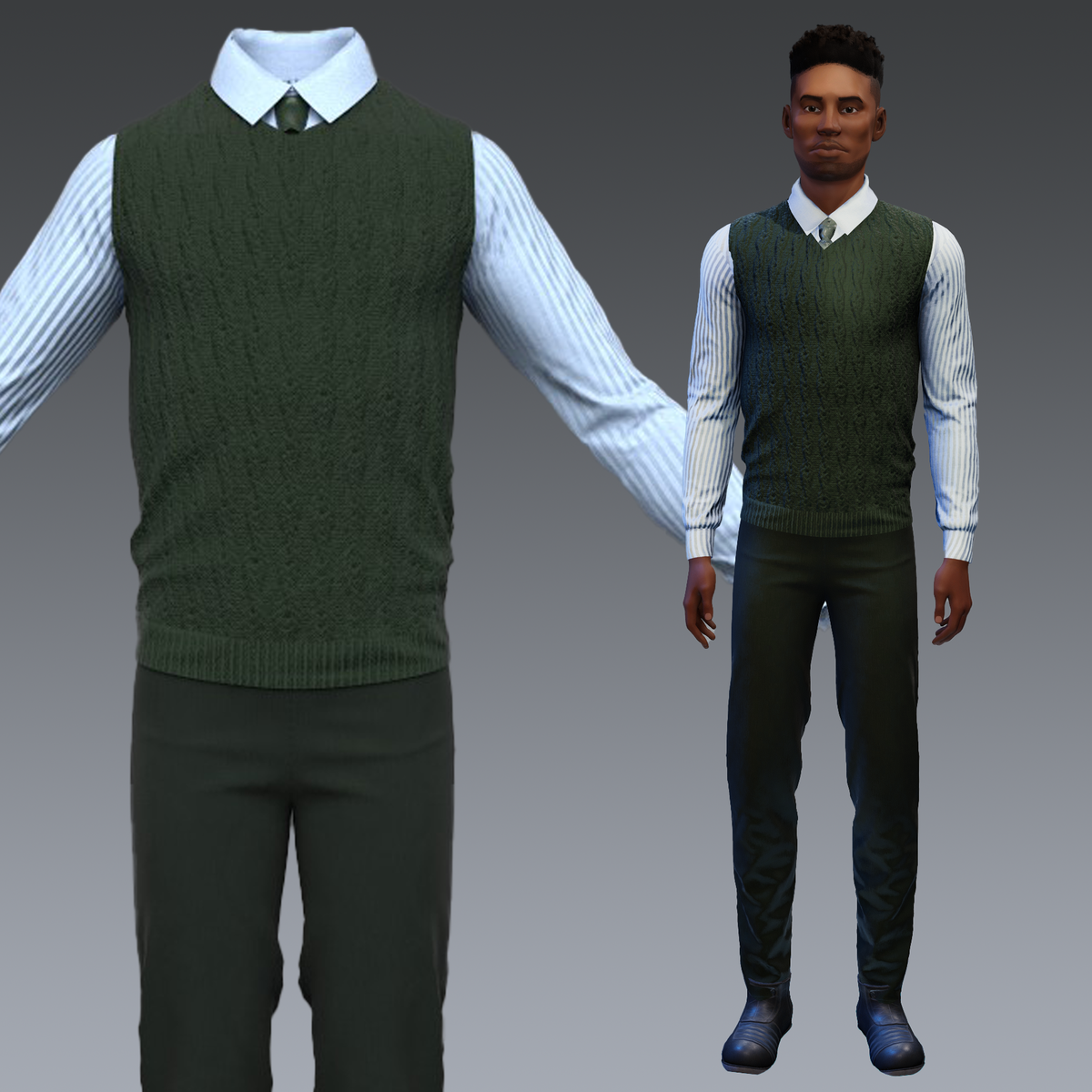 - Male Business Outfit - Green Blue