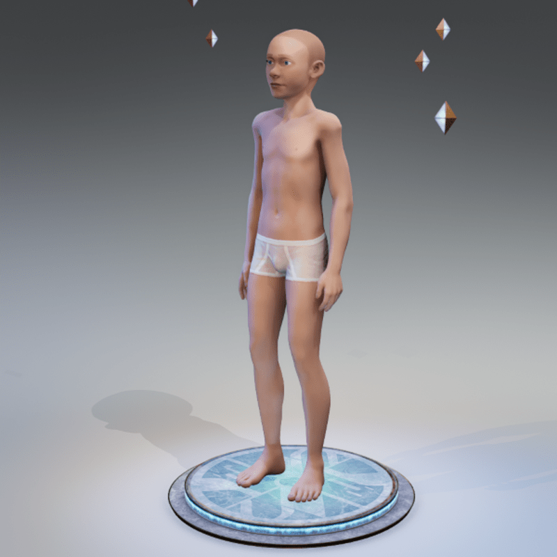 Basic Kid sized Custom Avatar. Clothes & hair not included. Difference between B1 and B2 is B2 has bigger head. You can add clothing and attachments but can not change the shape of the face. Shoes maybe an issue. Suggest reducing avatar height to between 0.7 and 0.8 for kid size. NOTE: there is a bug in Sansar where you can only adjust accessories on an avatar that has not been shrunk in size.