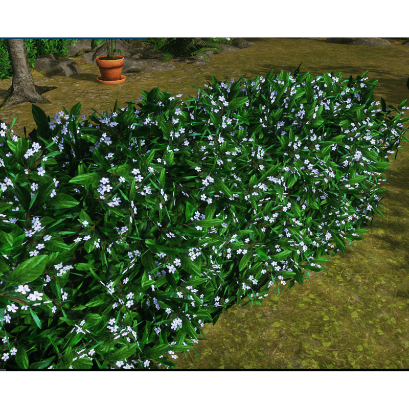 Hedge - Lilac Flowers. Also see the curved hedge (listed). Polycount = 6146 triangles. Model comes with collision. See in Sansar experience - https://atlas.sansar.com/experiences/reidparkin/reid-s-plants