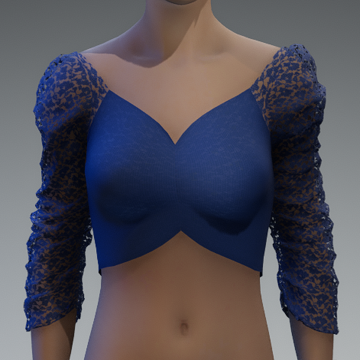 Blue lace ruched puff sleeve top