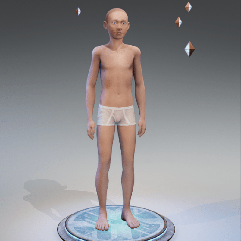 Basic Kid sized Custom Avatar. Clothes & hair not included. Difference between B1 and B2 is B2 has bigger head. You can add clothing and attachments but can not change the shape of the face. Shoes maybe an issue. Suggest reducing avatar height to between 0.7 and 0.8 for kid size. NOTE: there is a bug in Sansar where you can only adjust accessories on an avatar that has not been shrunk in size.