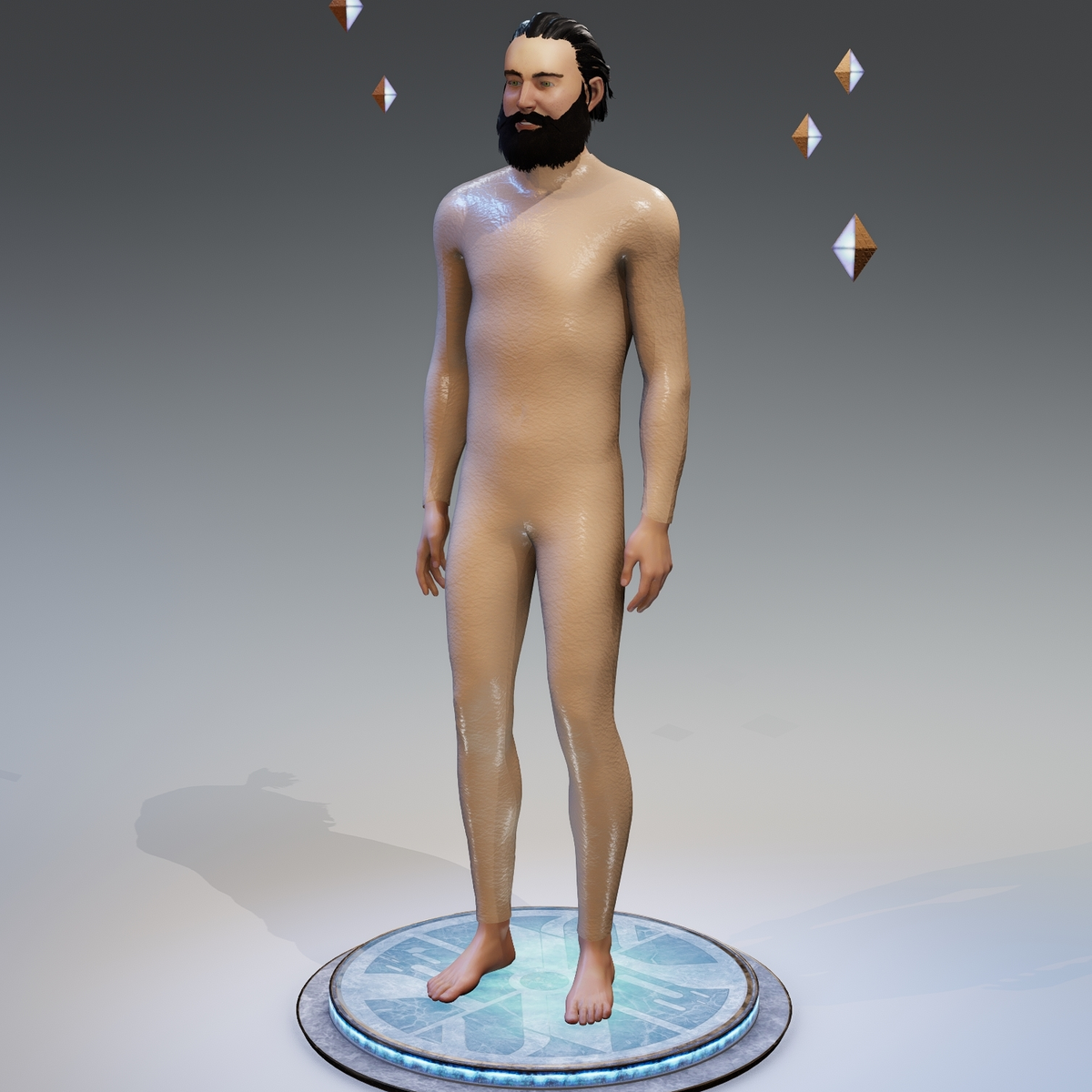 A synthetic human skin bodysuit to wear over your own. Only the finest quality synthetic skin was harvested for this garment. No synthetics were harmed in the production of this item. Don't forget the (>) Simulate button.