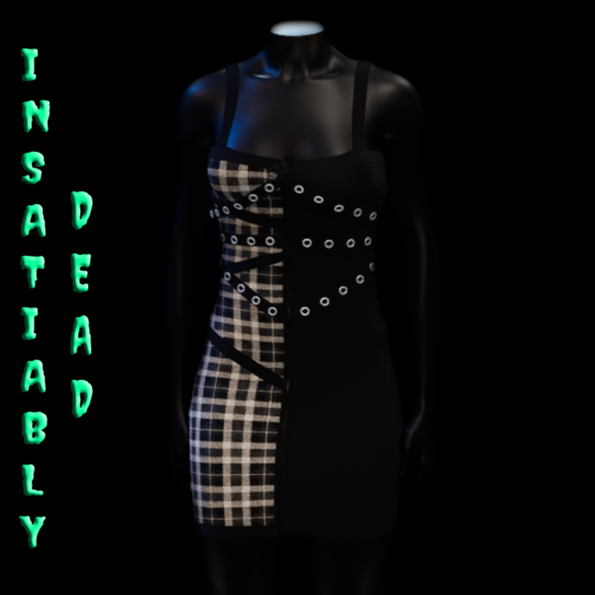 STRAPPED DRESS IN TARTAN PATTERN WITH BLACK PENTAGRAM ZIPPER [WHITE]. !!!SIMULATE GARMET AND ADJUST, THEN EXIT AND RE-ENTER SIMULATE GARMET TO RESET LOOPS IN PLACE IF FLIPPING OCCURS!!! CREATED IN MARVELOUS DESIGNER WITH AVATAR 2.0. ADJUSTMENT MAY BE REQUIRED! FITTING INSTRUCTIONS CAN BE FOUND BY GOING TO THE LINK BELOW. https://help.sansar.com/hc/en-us/articles/115005693363-Fitting-Marvelous-Designer-clothing-to-your-avatar PLEASE RATE AFTER BUYING! IF ANY ISSUES OCCUR PLEASE CONTACT TEAGAN BROKKEN FOR ASSISTANCE. THANK YOU! <3 <3 GET INSATIABLY DEAD <3