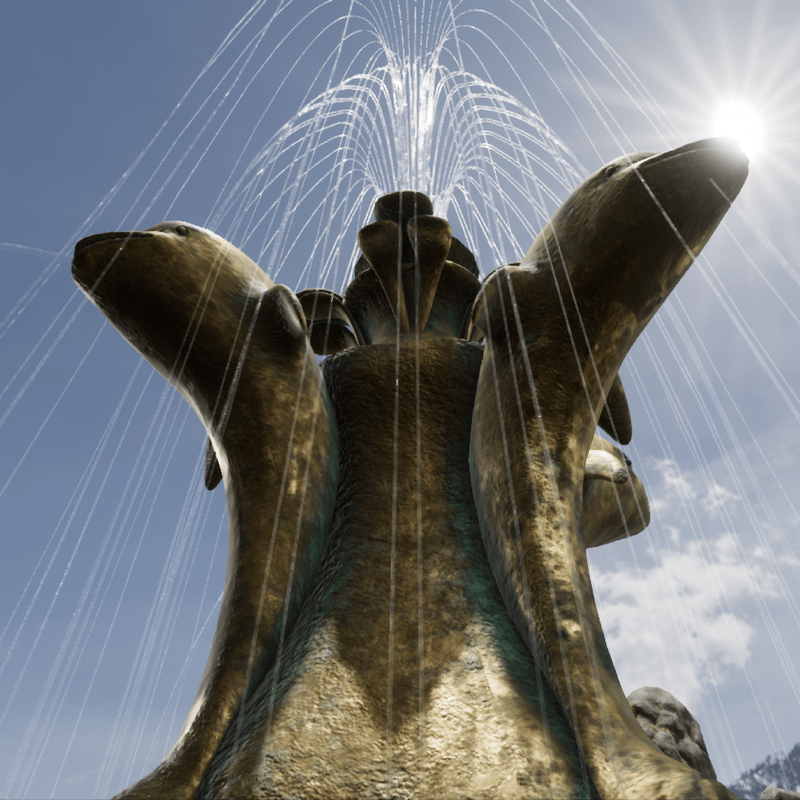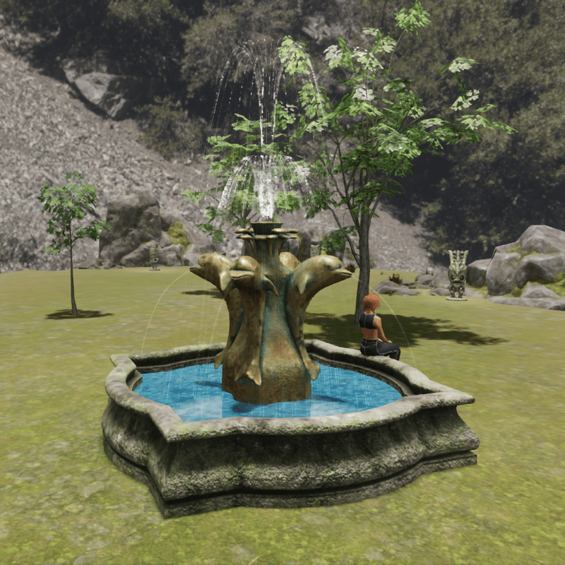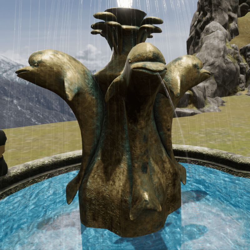 dolphin fountain with waves and animated water jets 4K high resolution textures Pleasant and realistic animated water ripples emerging from the center of the fountain. Animated jets of water. Built-in sound Mesh collision 241 triangles Tris: 48.8 K All permissions enabled Available to see here: https://atlas.sansar.com/experiences/fernandop/tka-jumble-sale Please don't forget to rate this product