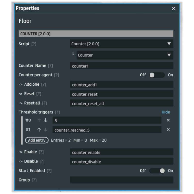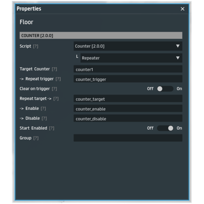 A counter script that triggers Script Library events when thresholds are reached, and a repeater that allows to repeat an event based on counter value. Changelog: 1.0.0 - Initial release 2.0.0 - Added counter repeater * I allow buyers to resell this script as part of their own products, but not as a standalone script