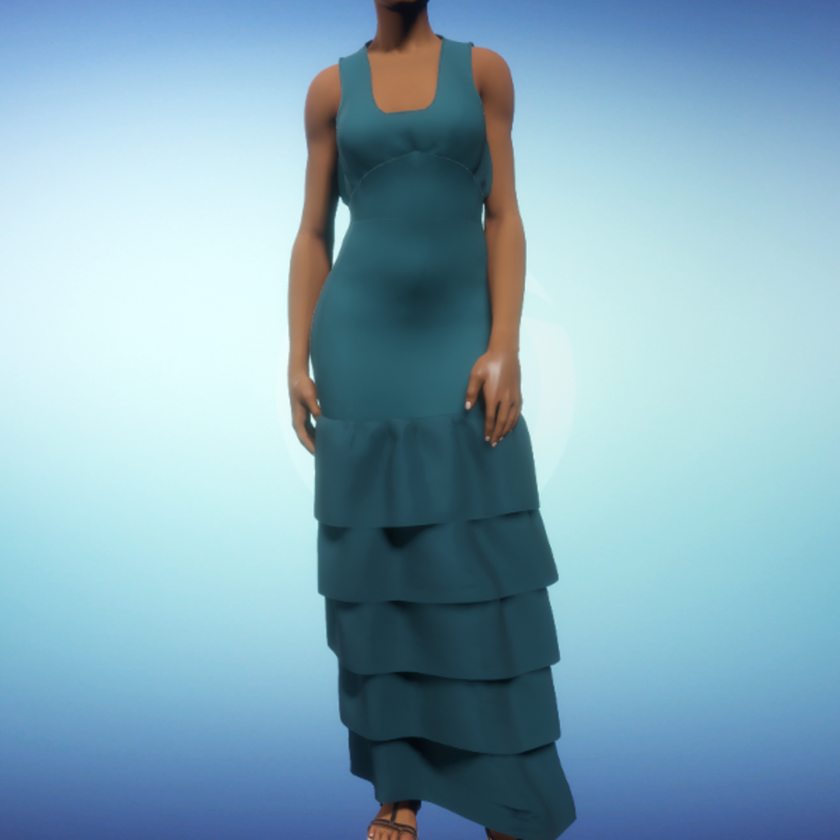 - Ruffled Gown - Teal