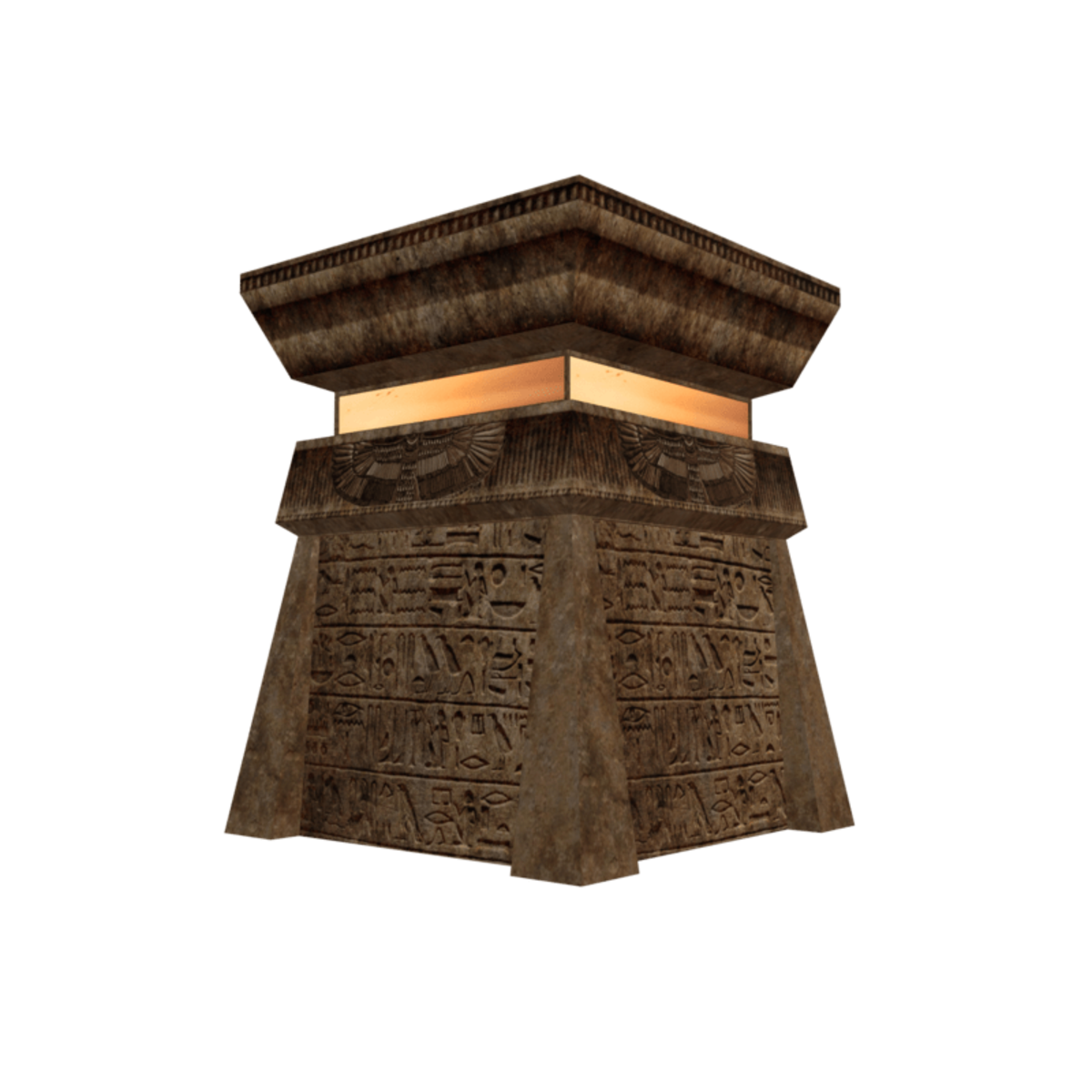 Egyptian style pillars with hierglyphic symbols and emmisive lights. Can be used as plant or tree holders or any idea you can think of..