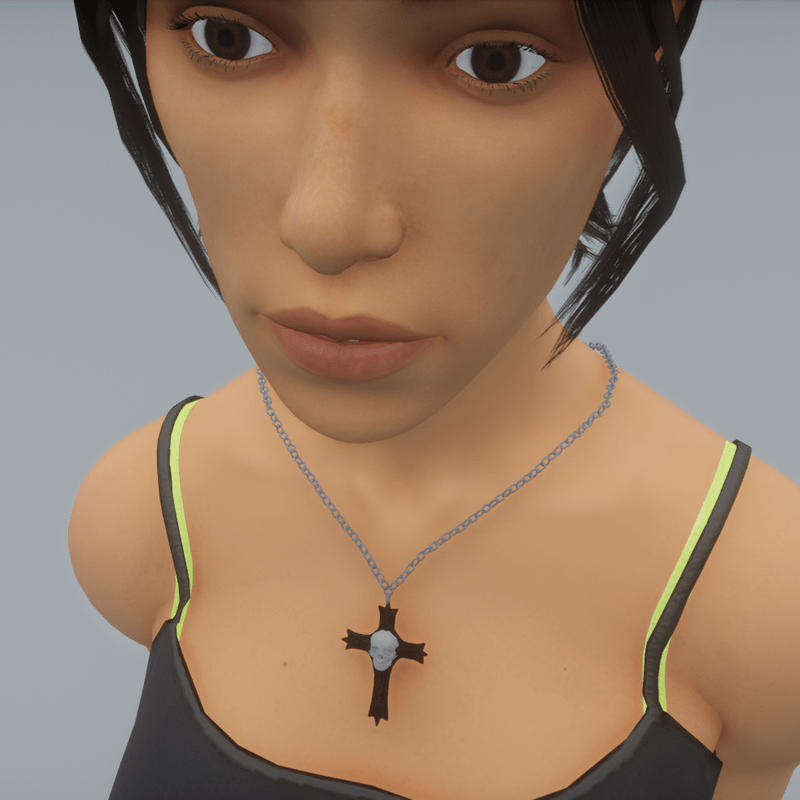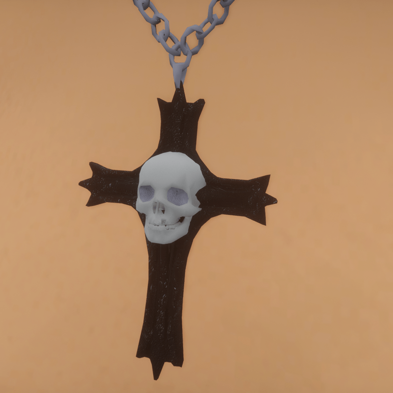 A wearable necklace with a skull cross pendant. The height is adjusted to fit female avatars.