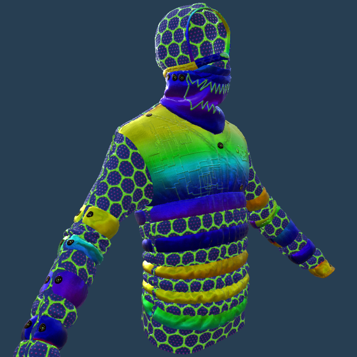 - PARTY_ HEXAGON JACKET_ WITH HOODIE_ AND MASK_ COLORS D_ EMISSIVE_