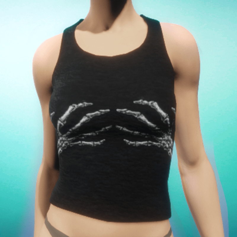 A simple cotton tank top in black with skeleton hands.