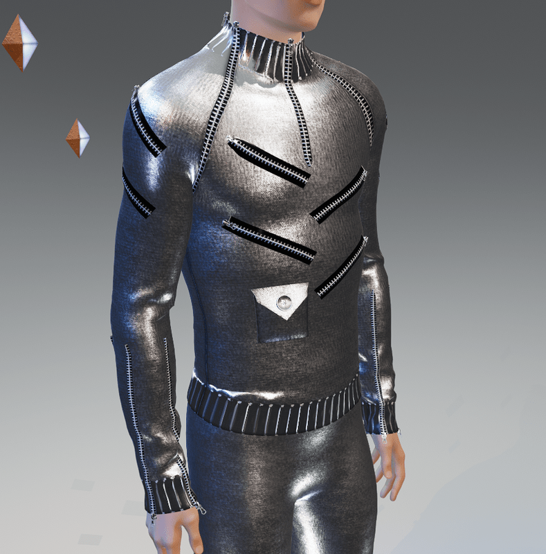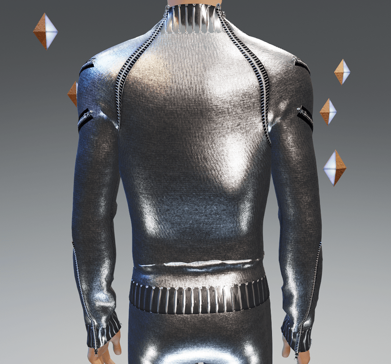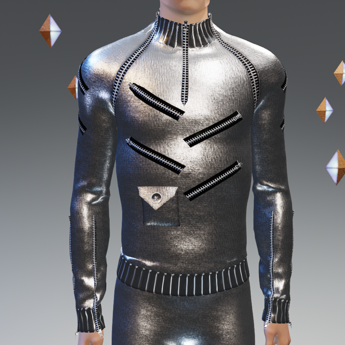 - Moda-Futuro Space-Age 19 Zippers Textured Silver Sweater