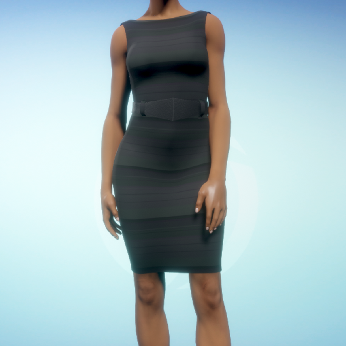 Boatneck executive dress featuring a striped print and matching leather belt. By Sweet Distractions Note: You will have to tug the material in some places to get rid of 'poke-through'.