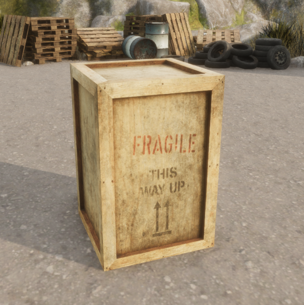 Wooden Packing Crate FBX model with collision mesh and 1k PBR texturing.