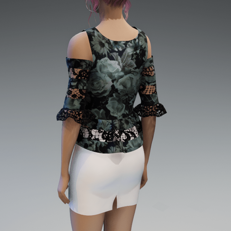 - Elegant Top with Lace in Black V3 with Roses4 Pattern