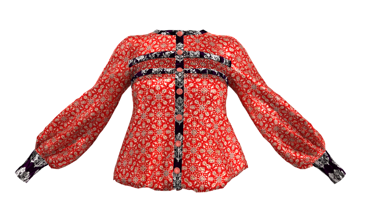 Beautiful Red Shirt With Geometric Print With Bishop Sleeve