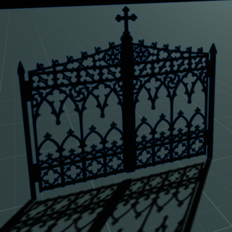 DEMO VIDEO https://youtu.be/-lUtsf0ggOw Scripted cemetery gothic gate with open/close sound effects.. you can change or remove sound effects and adjust other settings in script properties of each gate door..to move and/or scale use Scene object browser...