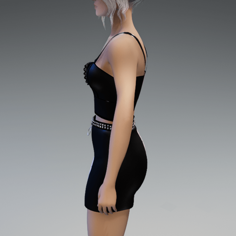 The skirt comes with a rivet belt on the top and a zipper on the front. Enjoy!
