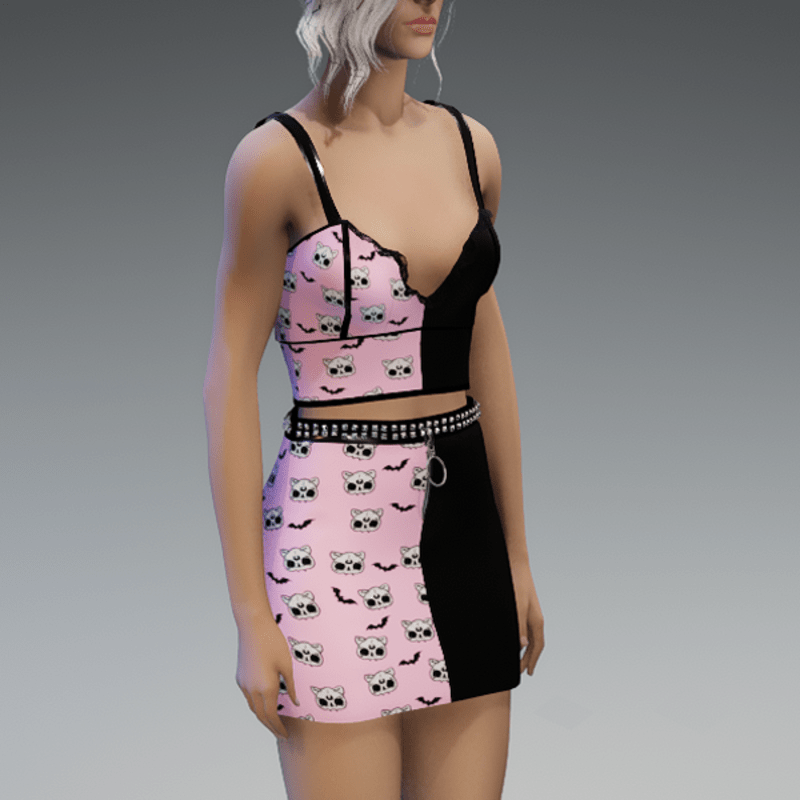 Skirt 'Deadcats & Bats' Pink | Sansar Store — Sansar