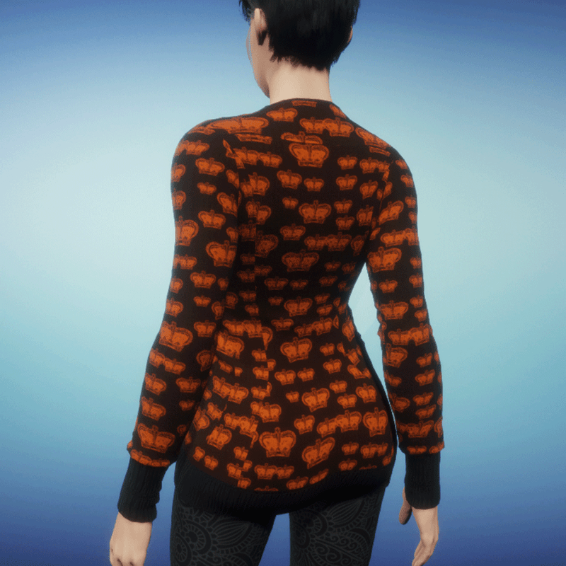 High quality long cardigan with working zipper and crown pattern. Please simulate the clothes before wearing to adjust it optimally.