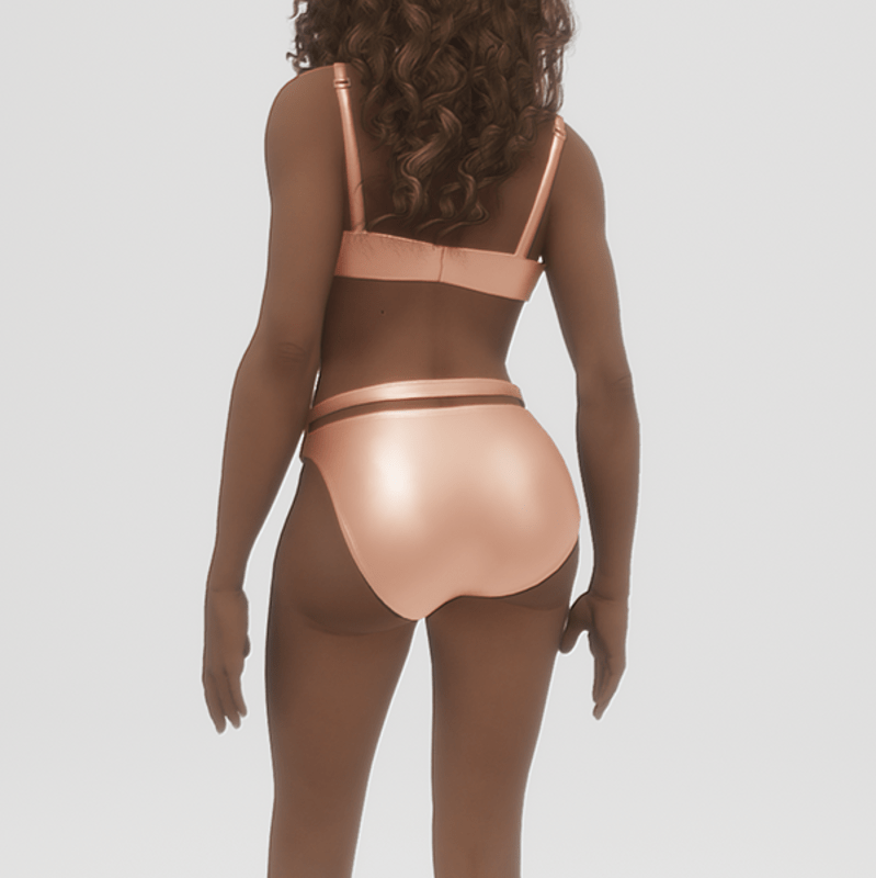 Silky undies in a sweet peach color featuring a cage detail above the waist. This listing is for the panties only. Check out the other colors in my store or pick up the matching peach bra (as seen in the last photo)here: https://store.sansar.com/listings/f9c28110-8746-4af2-abcb-e088b29fcc8f/satin-peach-demi-bra These are Marvelous Designer so be sure to click "adjust clothing" once they are on so you can move the strap to your liking and cover up any bits of the default skin's modesty underwear.