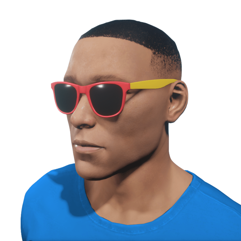 Red and yellow sunglasses in a classic style. Sized for male avatars.