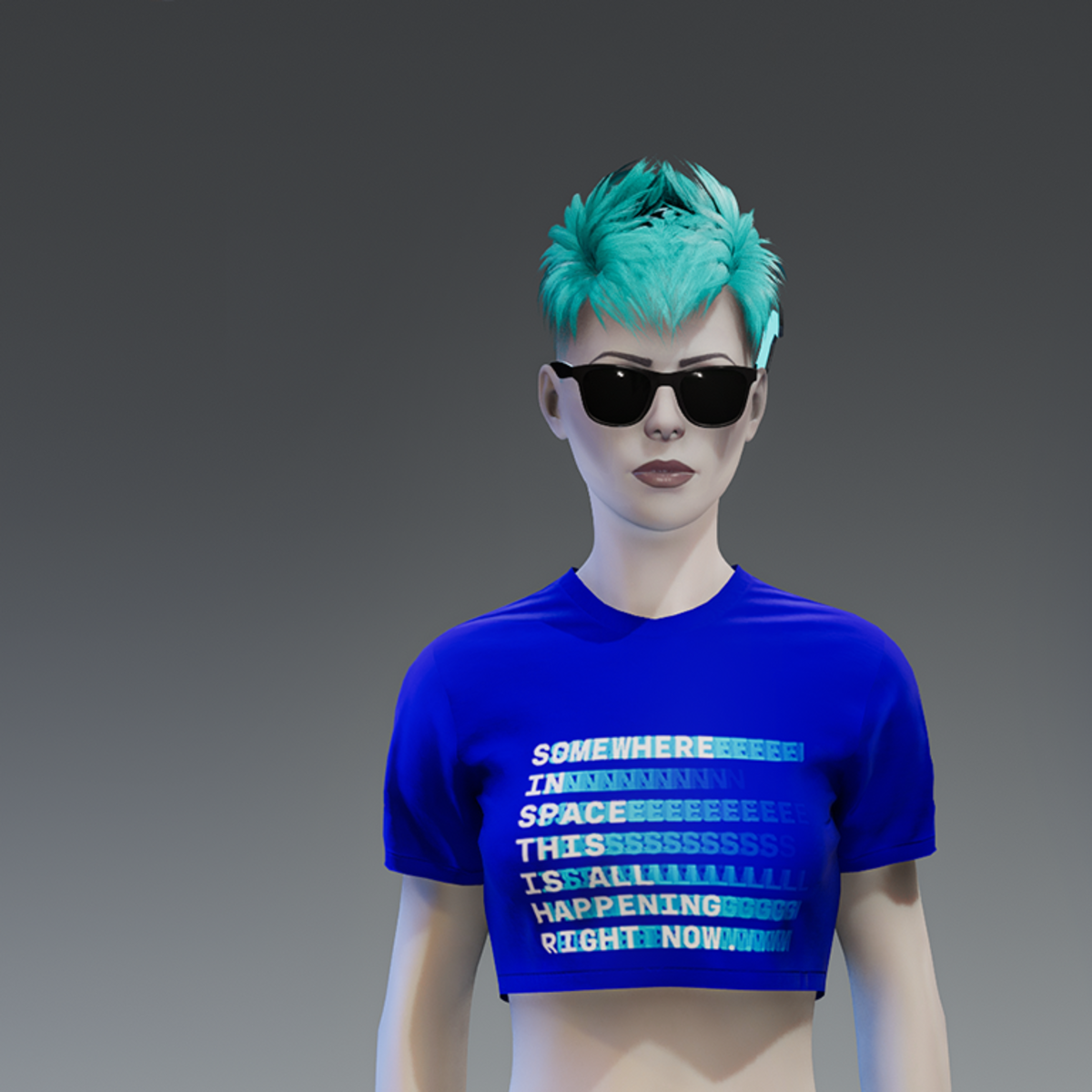 Blue croptop with Lost Horizon Graphic front print & Lost Horizon Logo back print. (UNISEX) Look for this shirt in the 'female' menu. Fits both body types with the (>) Simulate button.